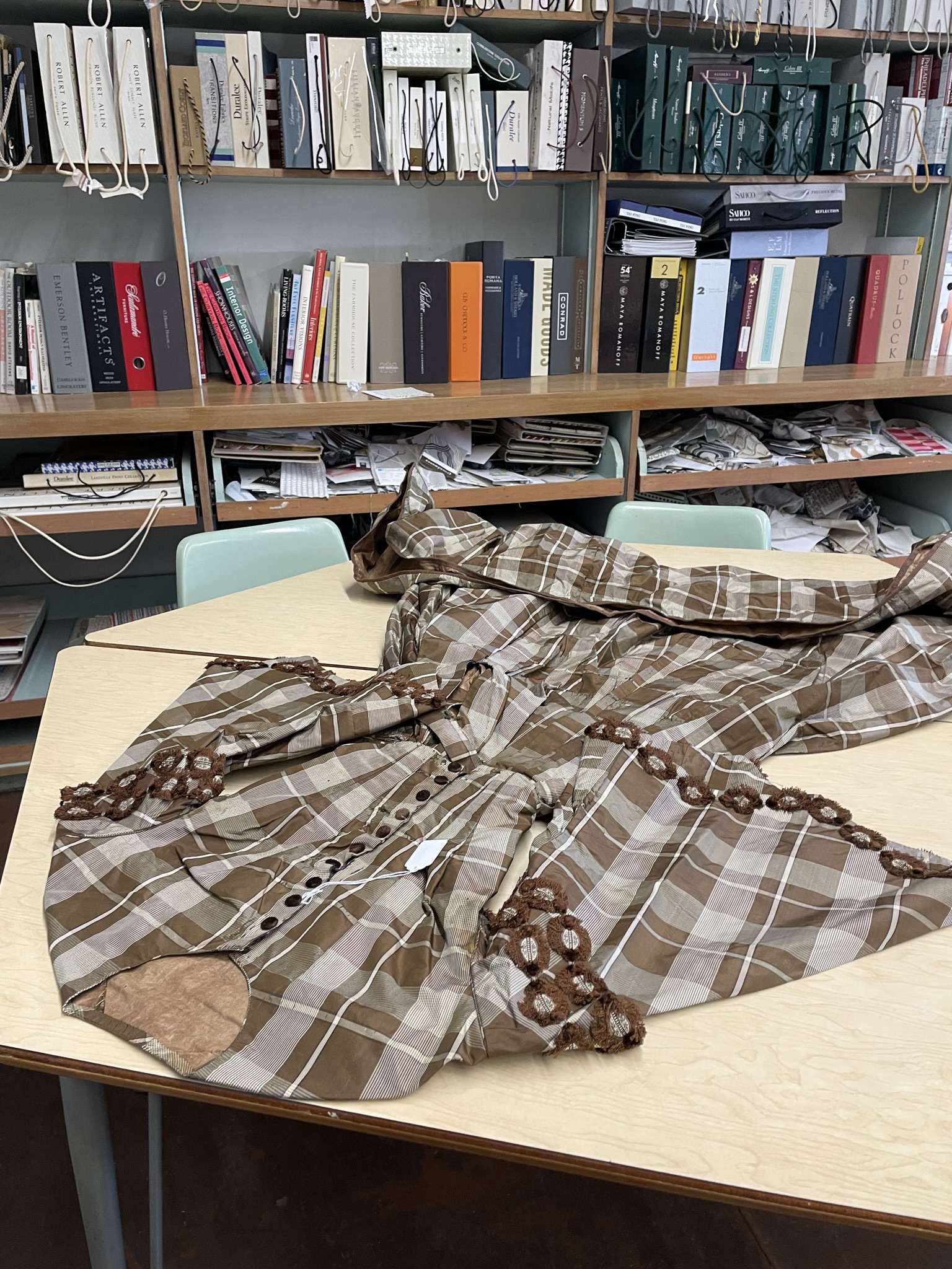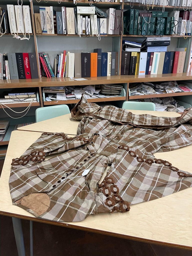 On February 23, 2022, I delivered three garments from the archives of the Mendon Historical Society to the department of Textiles, Merchandising, and Design (TMD) at the University of Rhode Island (URI). The department houses URI’s Historic Textile and Costume Collection and the students may choose to concentrate in historic textile conservation as a part of their TMD major. URI also offers a graduate program in this area, with advanced textile conservation as a specialization.