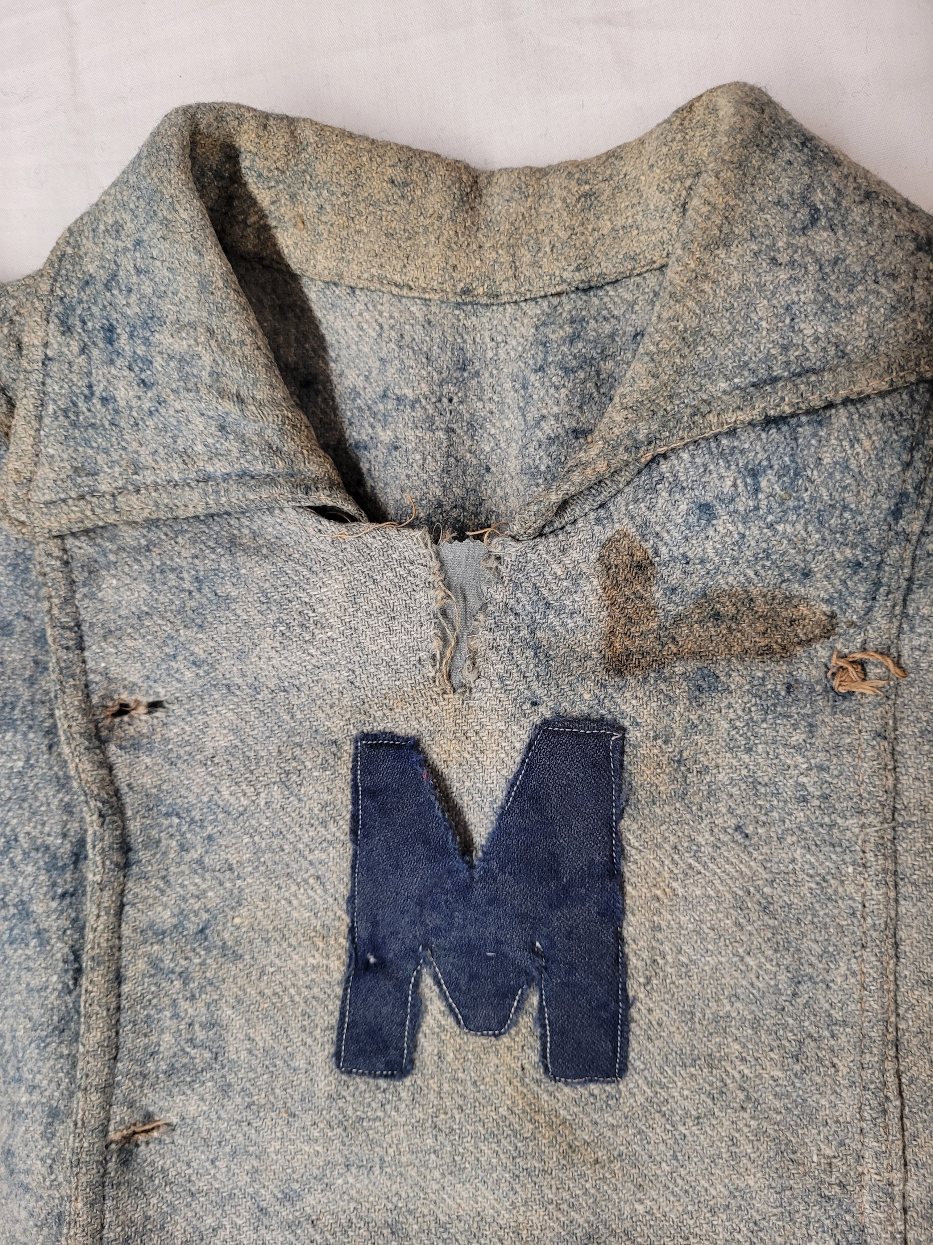 While this evidence remains, the uniform needed a gentle cleaning to remove insect remnants and a few small repairs to prevent further damage from occurring. The most obvious area in need of repair was a tear along the chest placket which was stabilized with a color matched fabric. Additionally, a few seams were resewn, and a patch was put in place to stabilize thin areas and holes near the left sleeve cuff. Interestingly, a few historic repairs were found in the sleeves, most likely mended after a game in which the player’s uniform was damaged. These were documented and left in place as further evidence of its use over time.